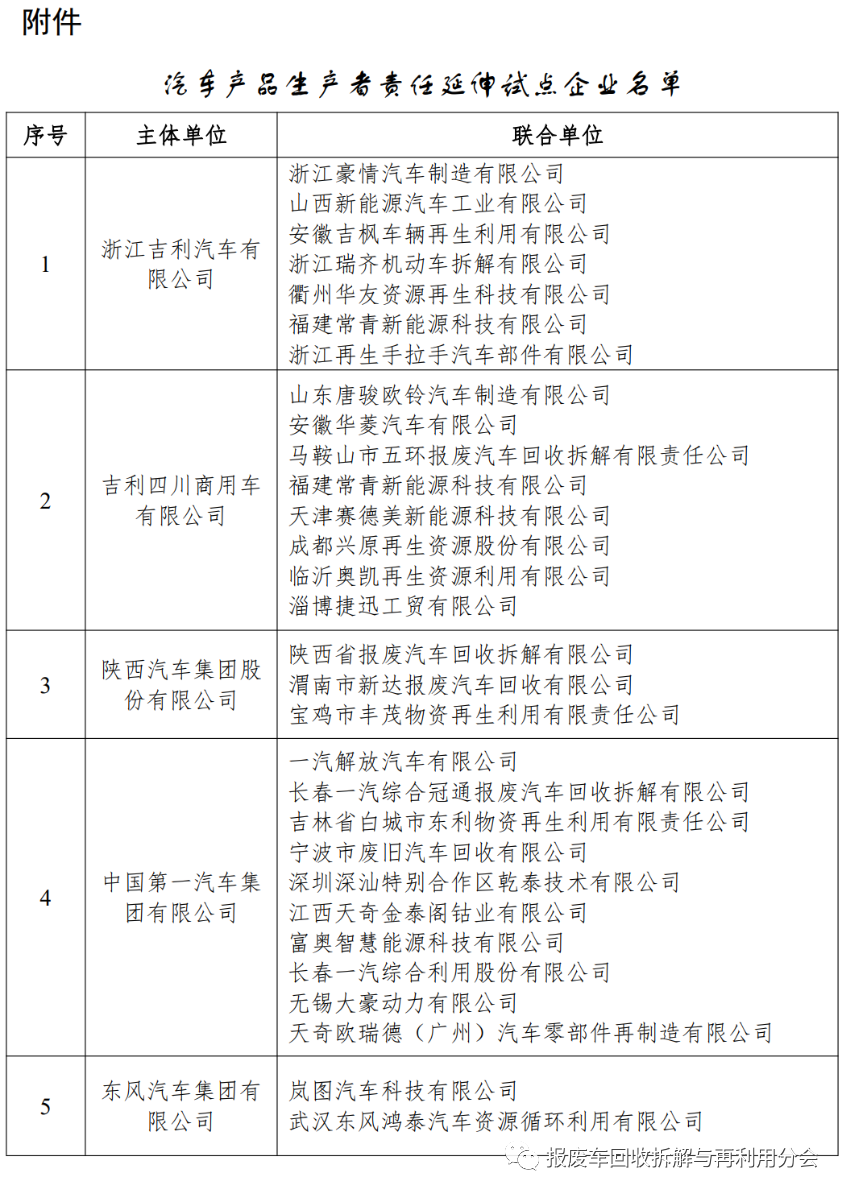 14.工信部:汽车产品生产者责任延伸试点企业名单公示