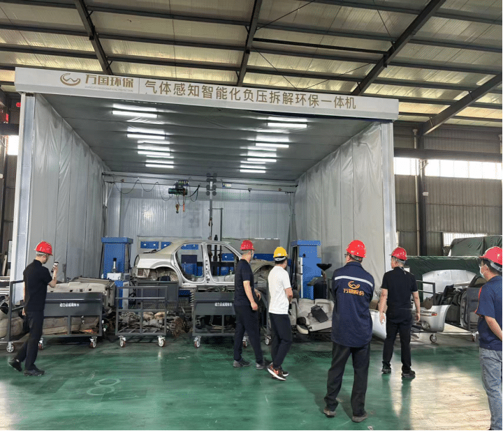 在技术创新层面,万国环保聚焦拆解过程中的污染痛点,构建“源头控制-过程拦截-末端治理”三级环保体系。其自主研发的负压拆解装置通过气体感知系统实时监测车间VOCs浓度,当检测到油液蒸汽或粉尘超标时,自动启动抽风机与三级净化装置(活性炭吸附+UV光解+催化燃烧),使VOCs排放浓度稳定控制在15mg/m³以下,优于国家标准25%。针对废油液回收这一核心环保指标,万国环保的油液智能回收系统采用全封闭管道与机器人精准抽油技术,废机油、防冻液回收率达99.8%,残余油液量≤50ml/辆,从根本上杜绝传统人工拆解导致的土壤污染风险。